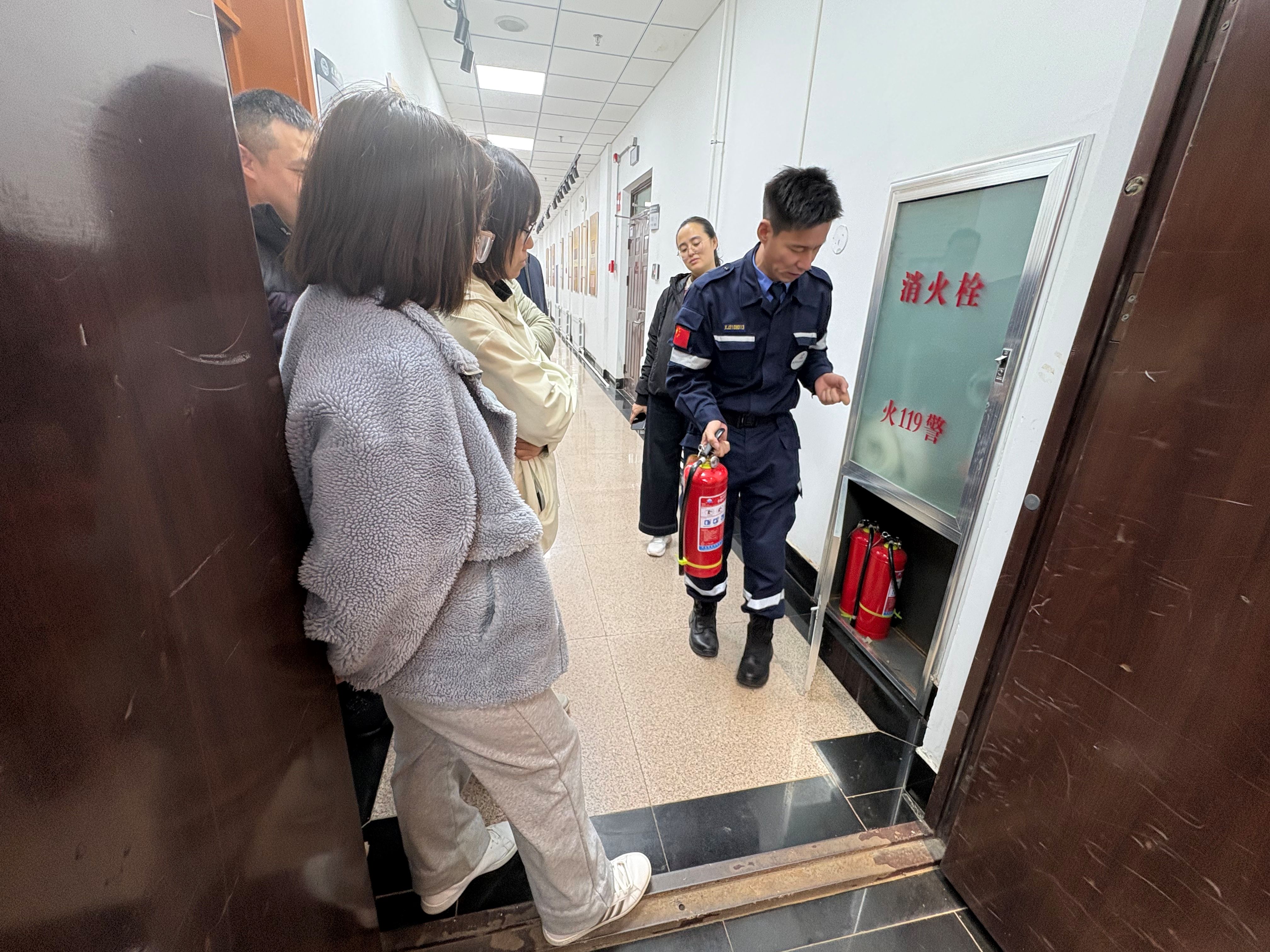 培训过程中,夏老师结合近年典型火灾案例,深入剖析火灾成因与风险隐患,围绕火灾初期扑救、人员疏散逃生、自救互救技巧等关键内容进行系统讲解。同时,针对消防器材的正确操作方法、使用要点及注意事项开展现场示范,指导教职工上手实操,确保大家听得懂、学得会、用得上。