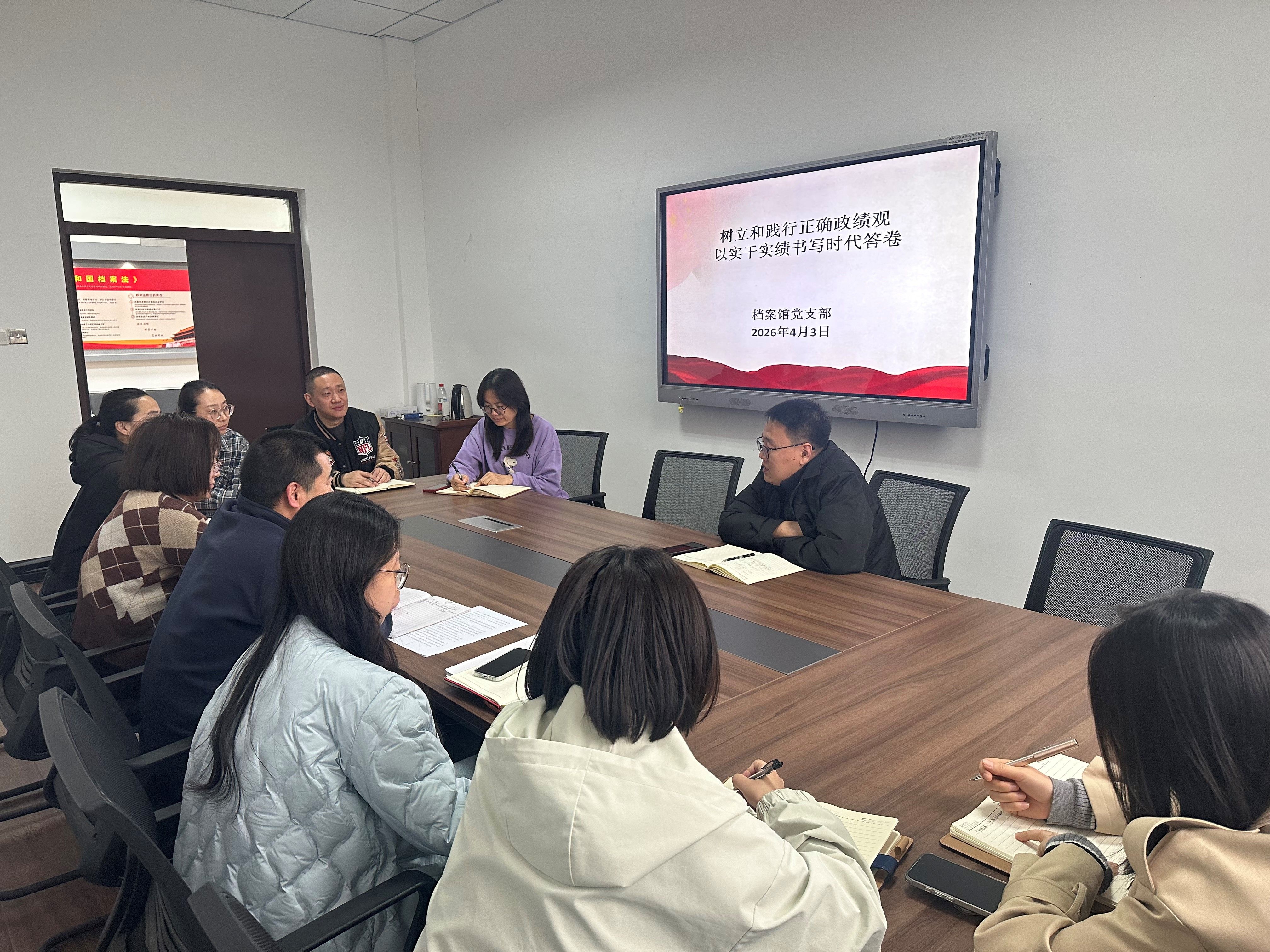 4月3日下午,档案馆党支部在档案馆会议室开展以“树立和践行正确政绩观”为主题的党课学习。支部全体党员参加学习,支部书记王毅为全体党员讲授专题党课。